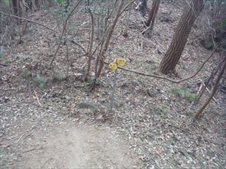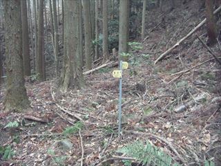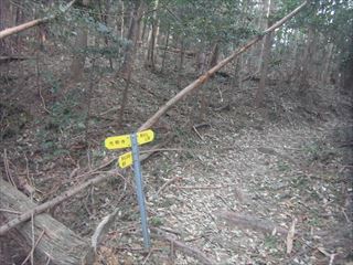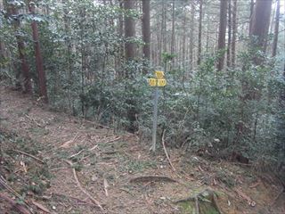 上の地図③の家所(西)に降りるT字路(N34d44m21s E136d25m38s[31s:道標]) |