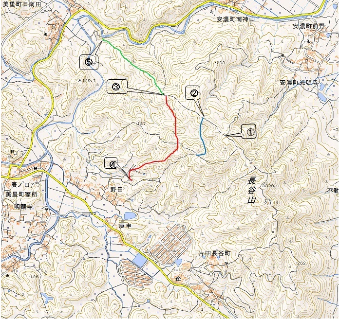 上の地図②の家所(東)へ下る交差点(N34d44m18s E136d25m43s) |