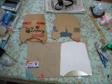 まずはダンボールを実物に合わせてサイズ・形を決める |