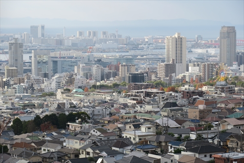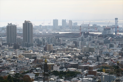 ポートアイランド方面、右中の観覧車は王子動物園 |