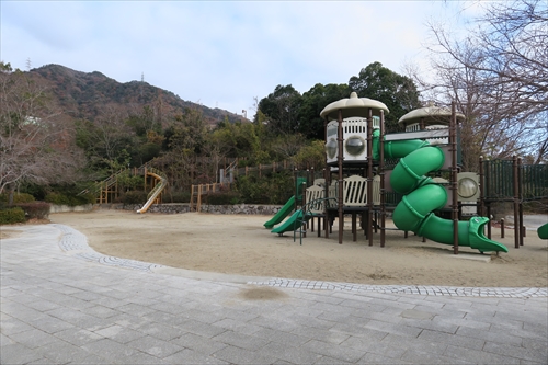公園は思ったより、かなり広かった。奥の施設は神戸製鋼の研修センター、安倍首相は海外留学後に同社に3年勤務し2017年にこの研修センターて神戸製鋼の会長らと会食している。 |