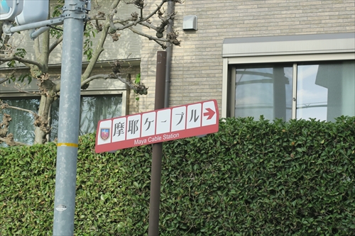 野崎通りを王子動物園に曲がる角にある摩耶ケーブルの案内板 |