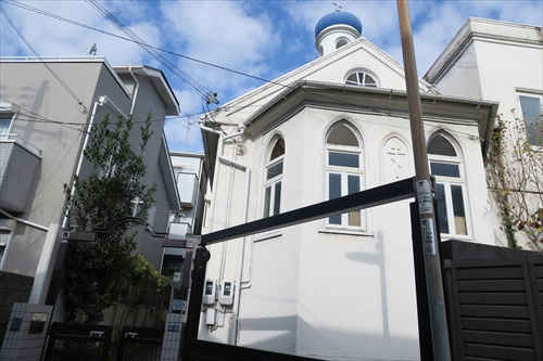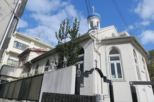 その1 ハリストス教会 正教会とはハリストス(キリスト)から弟子たちへ、その弟子達から次の弟子達へと二千年間連綿と受け継がれてきた歴史と伝統をもった教会。函館ハリストス正教会や東京神田のニコライ堂と同じく日本正教会に属している。明治6年(1873年)にイオアン小野壮五伝教者が神戸の地に正教を布教。大正2年(1913年)平野祇園町に会堂が建てられた。大正10年(1921年)トアロードにロシア人の二階建ての教会が建てられ、篭池野崎通りにもロシア人教会が出来、一時期、二つのロシア人教会と日本の正教会の三つが並列。 昭和20年(1945年) 平野にあった日本人正教徒の会堂が戦災によって焼失、しばらくは信徒宅を集会所として教会が存続。 昭和27年(1952年)チョコレートで有名なV・モロゾフ氏の尽力で、現在の地に「生神女就寝聖堂」が建立される。