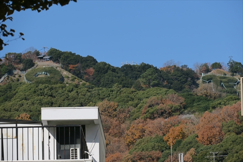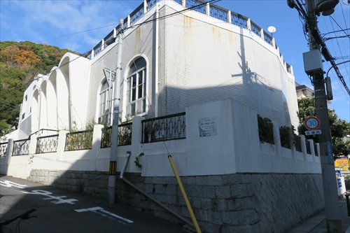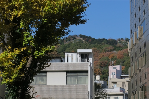 シナゴーグの奥の北野町西公園。市章山の登山口でもある |