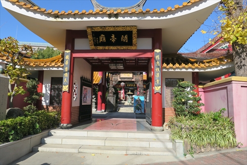「関帝廟」の扁額は戦後初代の住職 釋仁光が台湾に行き、世界的に有名な書道家 于右任(元蒋介石の秘書)にお願いし書いてもらったもの。 |