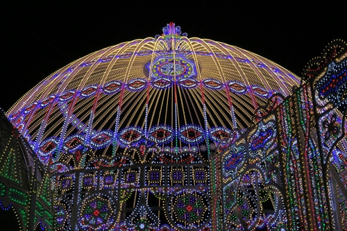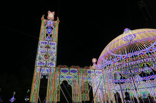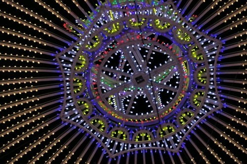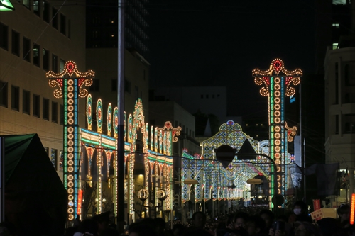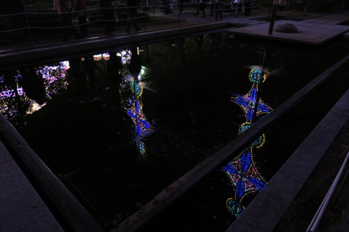 今年のテーマは「希望の光に導かれて25年」作品に使用する電球数は約50万個で、LED電球(約42.4万個)、白熱電球(約2.2万個) マイクロ電球(約5.2万個)を使用。この日は最終日で3,469千人が来場。最終日としては6年間で最高の人数。