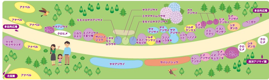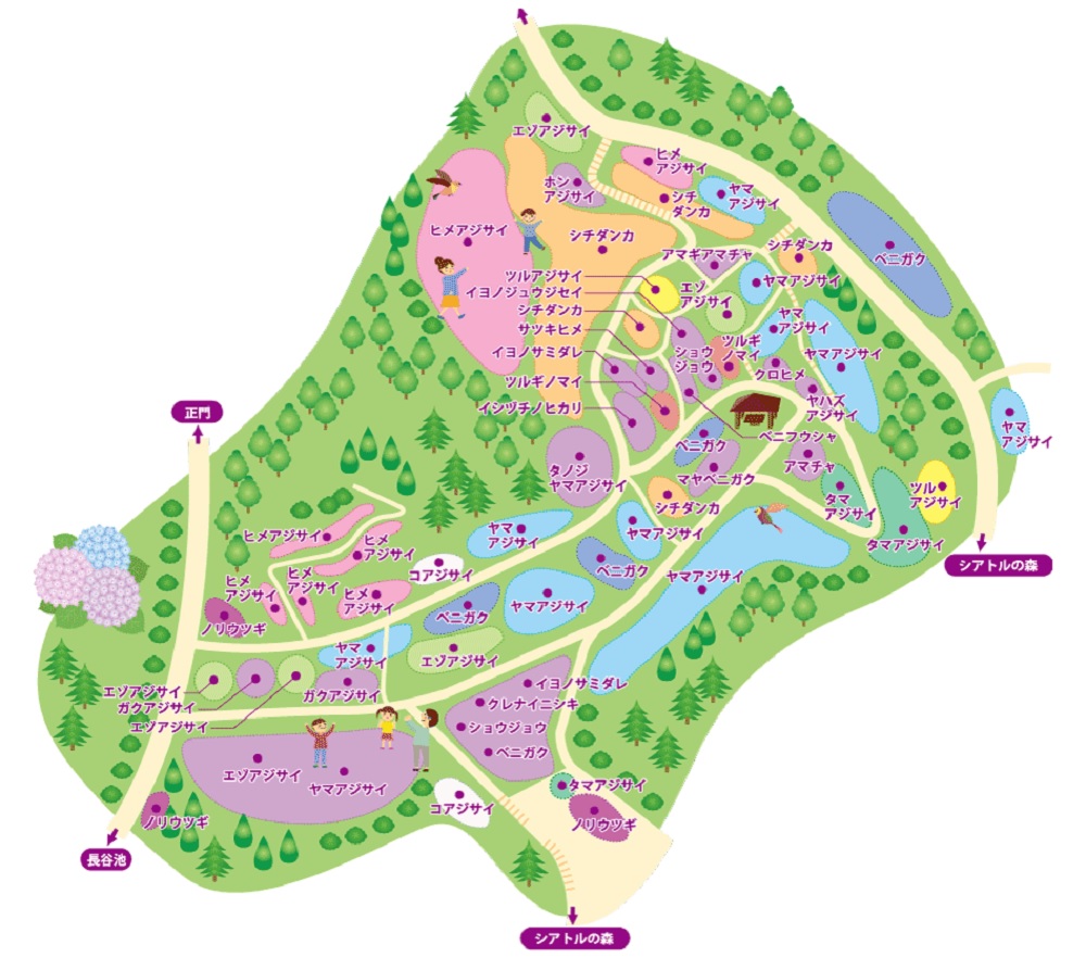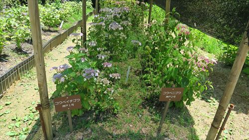 メタセコイア南の北苗畑で。神戸1号と2号。本園で交雑した個体から選抜した品種。あじさい情報センター |