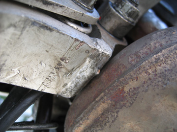 しかし、MC20のリンクを別途入手しても そのままでは取り付けられず またプレートを作成してもフニャフニャで つかない。 そこでMC21のリンクを知り合いの鉄工所で 加工してもらいプレートに穴を空けなおして ようやく取り付け |