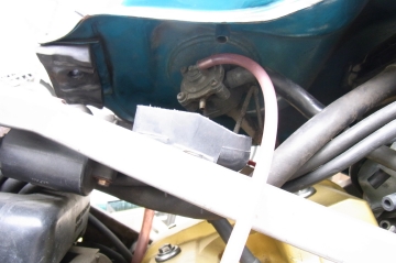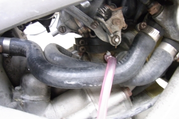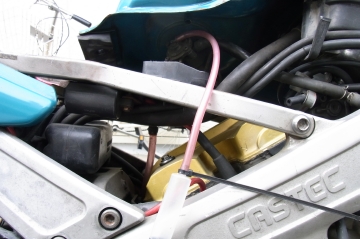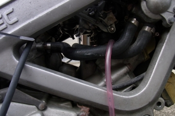 リアはバキュームホース、フロントは負圧取出し口に合う六角ボルトにドリルで穴を開けホースにタイラップでとめた