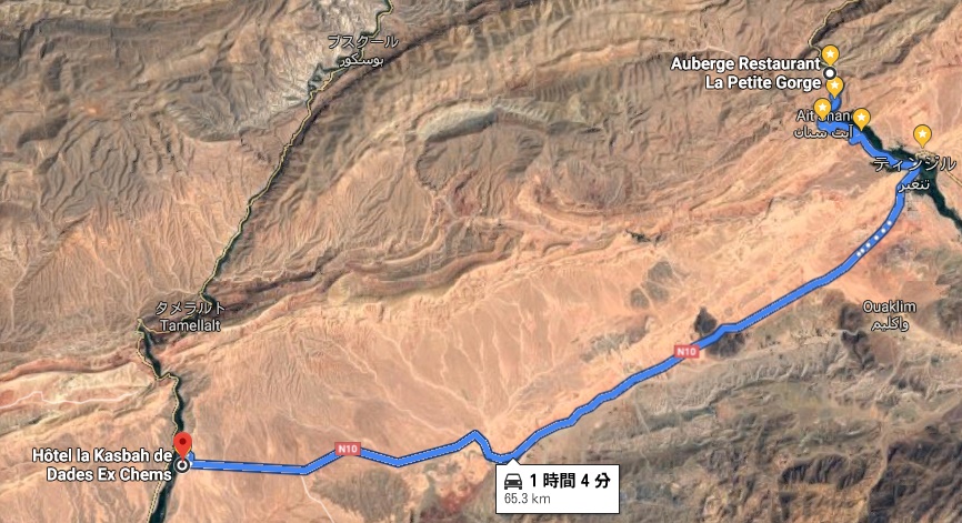 右は西方向Errachidia(エルラシーダ)、左は東方向のboumalne(ブマレン)、Quarzazate(ワルサザート)