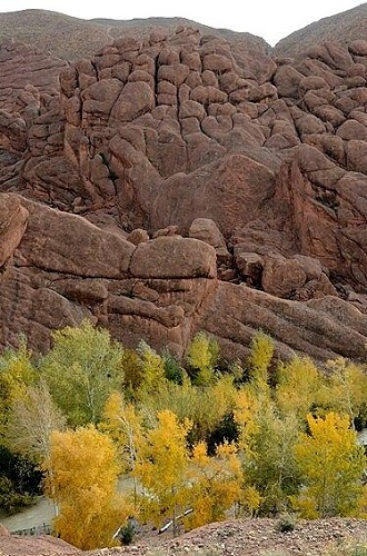 東のTinghir(ティンジル)へ51㎞、南西のKalat Mgouna(ケラーア・メグナ)へ24kmの標識。ここはBoumalne Dades(ブマルヌ・タデス)