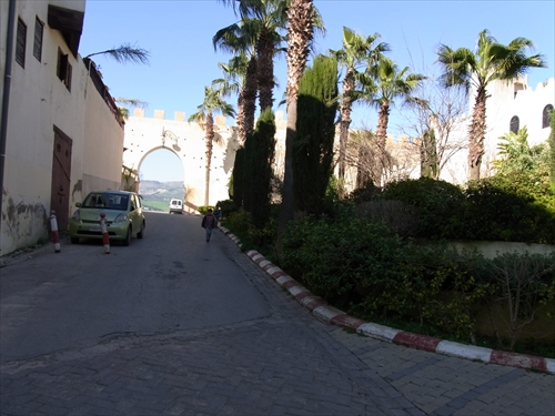 ホテルのの前のDerby Mernissi通り。北東に300m進むとブージュールド門 |