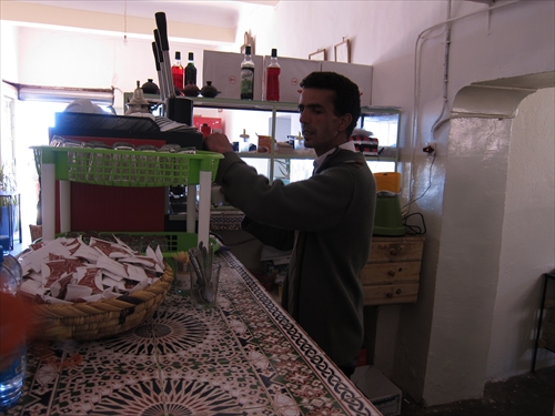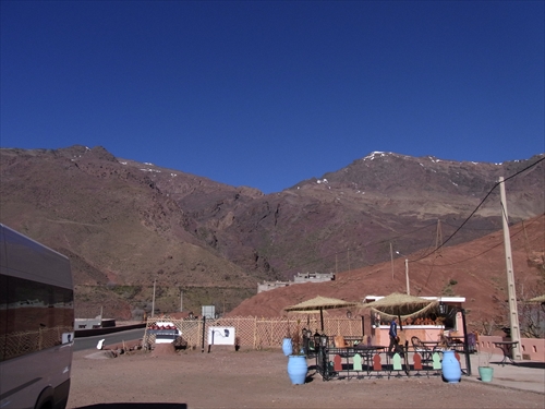 アトラス山脈の麓のCafé Restaurant Aguelmousで休憩