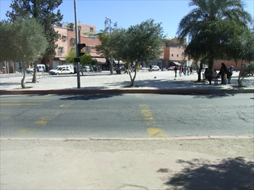 来た道がRue Bab Irhli、左右がRte d'Ourikaで右折する |