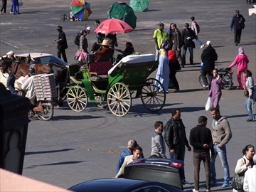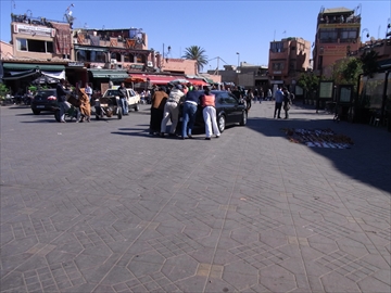 ジャマ・エル・フナ広場(Jemaa el-Fna)、車を押してどこへ行くのだろう?. |