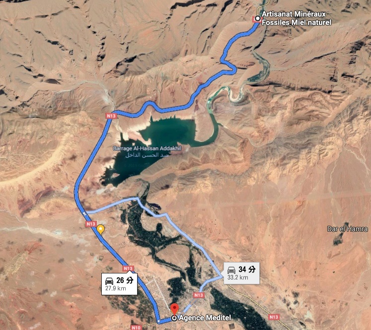 Barrage Al-Hassan Addakhi(アルハッサンダム) アルハッサンアルダキルは、現在のモロッコ王室であるアラウィード王朝の創設者であるシャリフイブンアリの祖父でした。彼は13世紀の終わりにタフィラルトの住民によってヒジャーズのヤンブーの町からモロッコに連れて行かれ、アブ・イブラヒム・アル・オマリの要請で彼らのイマームになったと信じられている。彼らは、彼がムハンマドの子孫であったので、彼の存在が彼のバラカ(神の存在またはカリスマ性の感覚を意味)のおかげで彼らのナツメヤシ作物を改善するのに役立つことを望んでいた。 |