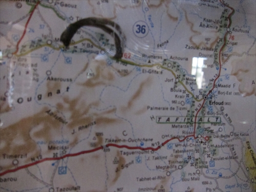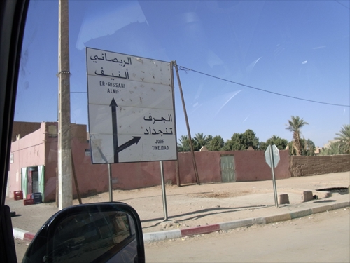 右はR702のJorf方向でこちらに進む、真っ直ぐは元来たN13のER-Rissani方向。