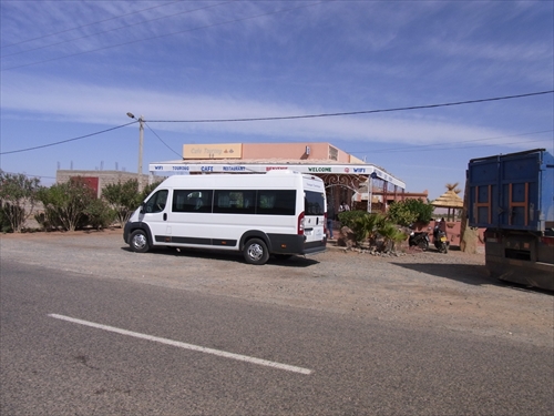 Touroug Cafeで休憩、ホテルから107km、マイクロバスに乗り換えたエルファードから56㎞ |