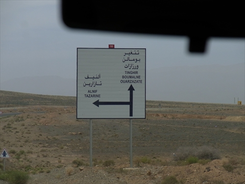 R113Alnif、Tazarine方面への分岐。N10をTinghir、Boumalne、Ouarzazate方向に進む |