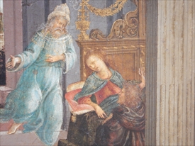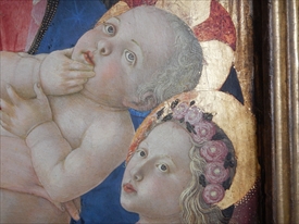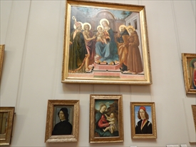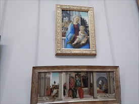 リッピの子供のフィリピ- ノ・リッピの「聖母子」「エスター物語から3つの場面」。フィリピーノは10歳でリッピが育児放棄し、ボッティチェリが面倒を見た。フィリピーノの作品ではフィレンツェのベッキオ橋を渡って少し南西に歩いたところにあるサンタ・マリア・デル・カルミネ教会の中のブランカッチ礼拝堂の「聖ペテロの磔刑」が一番記憶にある。 |