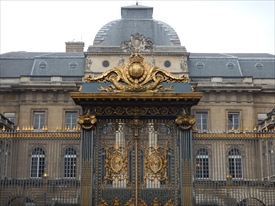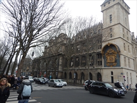 パレ・ド・ジュスティス(司法宮)。破毀院、パリ控訴院(fr)、パリ重罪院、パリ大審裁判所、検察局及び弁護士会など複数の主要司法機関が置かれている。奥の尖塔はサント・シャペル。