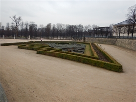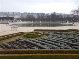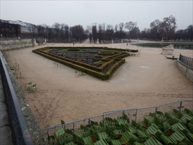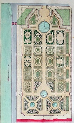 17世紀半ばに描かれたチュイルリー公園の図面。赤い部分がチュイルリー宮殿 |