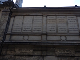 次の4分野に分けて収蔵する作家の名が挙げられている。monuments(彫像)、beaux arts(美術)、topographie(地勢)、iconographie(図像学:絵画や彫刻の表す意味や由来について研究) 絵画では右のジャック=ルイ・ダヴィッドの球戯場の誓いがあるらしい |