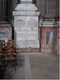 ダ・ヴィンチ・コードから 《キー・ストーンはローズ・ラインの下に隠されている。サン・シュルピス教会のオベリスクの根もとに。・・・オベリスクに向かってひとつずつ叩く。ついにそのうちの一枚が奇妙な音を立てた。この下は空洞になっている!》こうしてシラスは、この台座の根元を鉄製の燭台で叩き割り、一枚の石板を手に入れる。そこには《ヨブ 38 11》と書かれていた。ヨブ記38章11節を開くと「ここまでは来てもよいが越えてはならない」とある。シラスは、己が手にかけた者たちにだまされたことを知り、愕然とする。 |