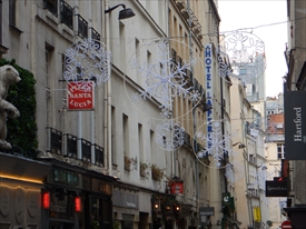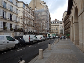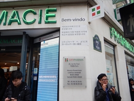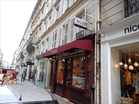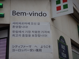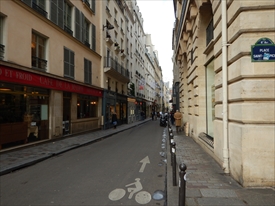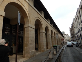 Rue Clement沿いのアーケード。手前にユニクロがあった。アーケードは一辺120mぐらいの正方形の回廊になっていて中にサンジェルマン市場がある。 |