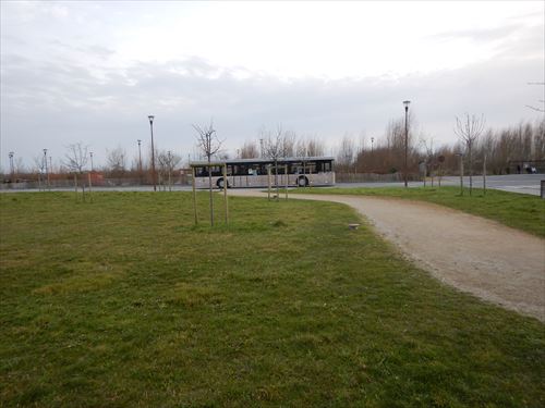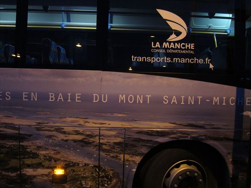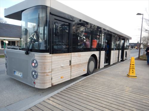 歩くところは木道になっている。バスはLe Passeur(ル・パッサー)という電気バス。大駐車場から12分で島に行ける。無料。 |