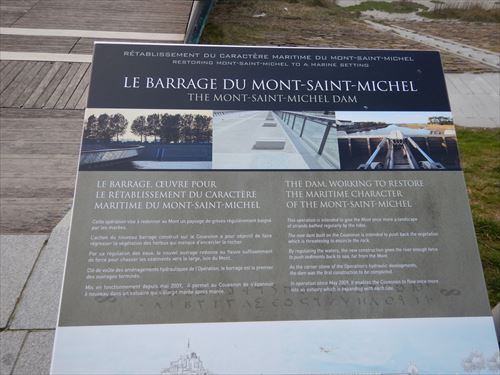 this operation intended to give the mont once more a landscape of strands bathed regularly the tides the new dam built on the couesnon is intended to push back the vegetation which is threatingening to encircle the rock by regulating the waters,the new construction gives the river enough force to push sediments back to sea,far from the mont as the corner stone of rhe operation's hydraulic developments the dam was the first construction to be completed in operation since may 2009,it enables the couesnon to flow once more into an estuary which is expanding with each tide この工事は、モンに再び潮の満ち引きが繰り返される砂浜の景観を与えることを目的とした。 クエノンに建設された新しいダムは、岩を囲む脅威となっている植生を押し戻すことを目的とする。 水流を調整することで、この新しい建設により、川は堆積物をモンから遠く離れた海へと押し戻すのに十分な力を得る。 このダムは、この事業の水力開発の礎となる最初の建設物。 2009年5月から稼働しているこのダムにより、クエノン川は再び潮の満ち引きごとに拡大する河口へと流れ込むことが出来るようになった。 |