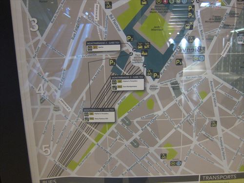ヴォージラール駅(Gare Vaugirard) モンパルナス3(Montparnasse 3)とも呼ばれる。パスツール大通りの南側、25〜28番ホームの頭端側に位置する。他の駅舎、ホームとは24番ホーム上の動く歩道で結ばれている。 |