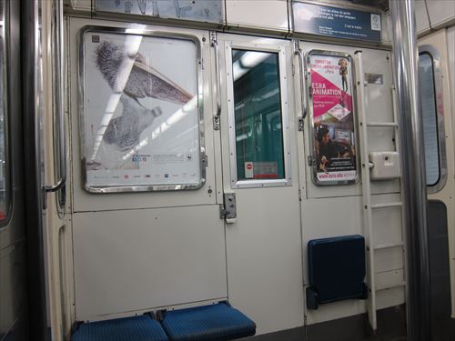 車両の端 左のポスターはフィッシュ・フォワード。魚の消費が社会や環境に与える影響についての意識を高める汎ヨーロッパのプロジェクトでAustria, Bulgaria, Croatia, France, Germany, Greece, Italy, Portugal, Romania, Slovenia, Spainが参加。2018年からの2期目のプロジェクトにはフランスは参加していない。 右のESRA ANIMATIONはニース・ソフィア・アンティポリス大学を親組織とするアニメーション学校 右上はtracezles allees du jardin echangez la clef des languages la nuit patit.c'est la matin .庭の小道をたどり、夜に言語の鍵を交換する朝です Robert Desnos(1900/7/4-1945/6/8) |