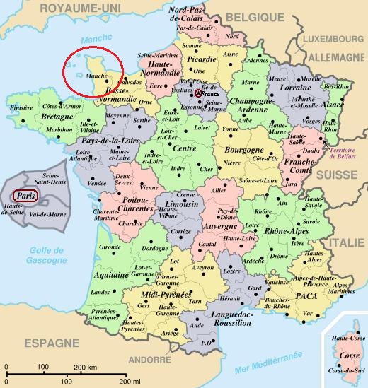 normandie fort et vert 力強く緑豊かなノルマンディー 車両の扉の右にあるBasse-Normandieはバス=ノルマンディー地域圏を指す。 フランス北西部、イギリス海峡に面する、かつて存在した地域圏で、地域圏内にカルヴァドス県、マンシュ県、オルヌ県の3県を含む。 上のフランス県地図の赤丸の右。 10世紀から11世紀にかけてノルマン人の一派が北方よりこの地に移住してきた。比較的開発が遅れていたが、近年フランス政府の補助金などを受けて産業振興が進められている。 気候は西岸海洋性気候の影響で一年を通じて温暖であるものの、全般に風が強く湿度が高い。 面積は日本の四国よりやや狭い程度、人口は奈良県とほぼ同じ程度。 主要産業は農業、観光。フランスでの麻(リネン、フラックス)栽培はこの地域で主に行われている。 |
