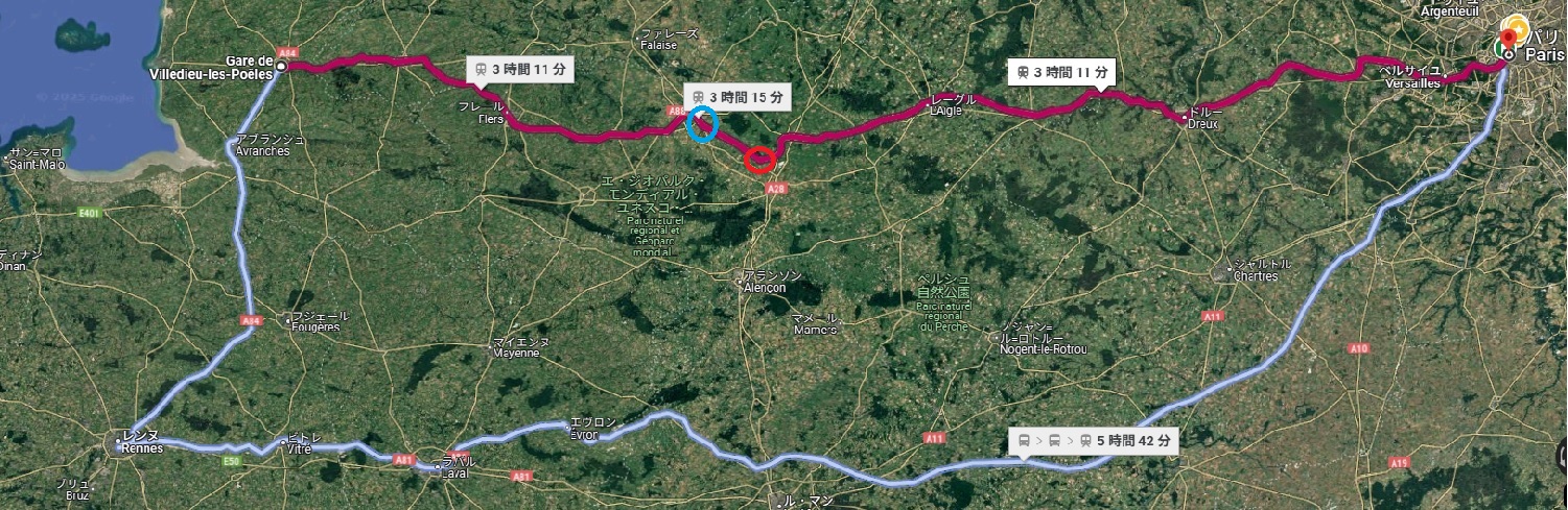 prochain depart 次の出発 19:06 argentan surdon アルジェンタン(下の地図の青丸) スードン(下の地図の赤丸) |
