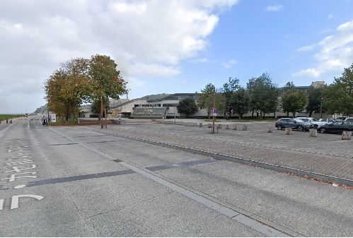 島の左隣の建物はProduits Regionaux LEFRANC Farmshop(ルフラン農園の地域産品) 。大駐車場の北東角に出たところにある |