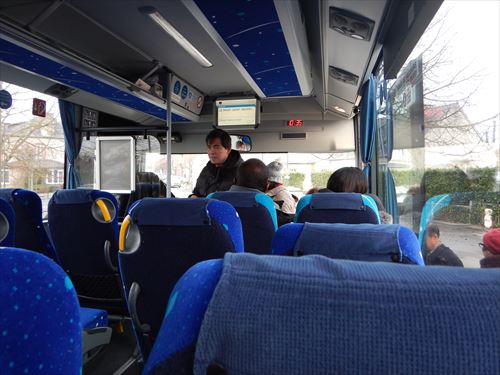 窓のステッカーは左から 握り棒に捕まる絵文字。 port obligatoire la centure de securite シートベルトは義務です sortie au centre 真ん中に出る(?) passer a l'amere s'il vous plait(一方に進んでください) |