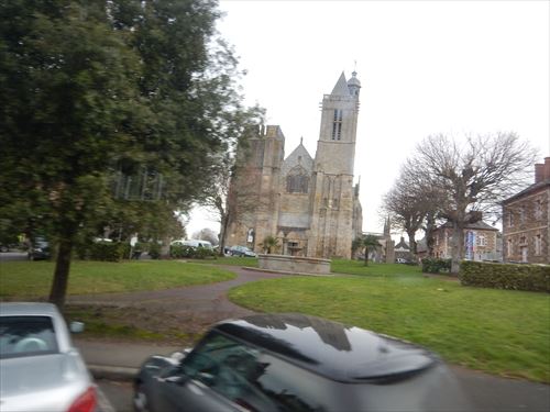 中央の尖塔はポントルソン ノートルダム大聖堂。Église Notre-Dame de Pontorson 。モン・サン=ミシェル修道院長ロバート・ド・トリニは、1158年の年代記の中で、イングランド王ヘンリー2世がモン・サン=ミシェル修道院を訪問した際、修道院長、ルヌーフ修道院長、修道士の メーネール、そして法官トーマス・ベケットの書記官ジェルヴェの面前で、ポントルソンの教会を修道院、修道院長、修道士に与えたことについて記している。 |