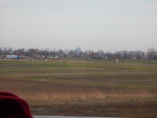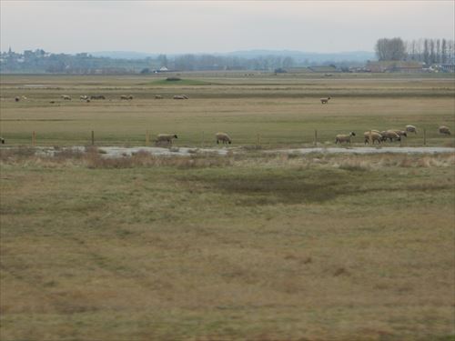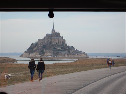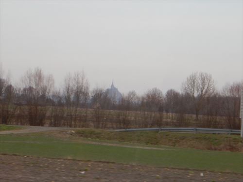 中左にモンサンミッシェルが見える。モンサンミッシェルまで約8㎞ |