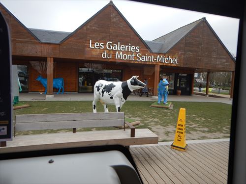 モンサンミッシェル大駐車場手前。奥はLa Ferme Saint-Michel というレストラン。コースは29ユーロと45ユーロ。(2024/9)。 ここから奥は許可が無いと入れない。 |