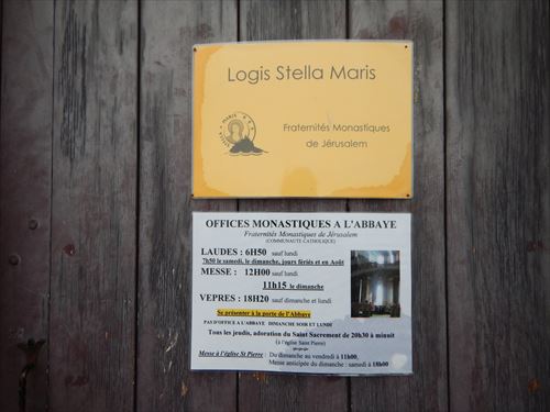 fraternite's monastiques de jerusalem(エルサレムの修道友愛会) offices monastiques a l'abbaye 修道院での修道院の礼拝 laudes(礼拝) 6H50 sauf lundi(月曜を除く) messe(ミサ) 12h00 vepres(昨夜の祈り) 18h20 sauf dimanche(日曜) et lundi(月曜) tous les jeudis,adoretion du saint sacrement de 20h30 a minuit (毎週木曜日、午後8時30分から真夜中まで聖餐の礼拝) |