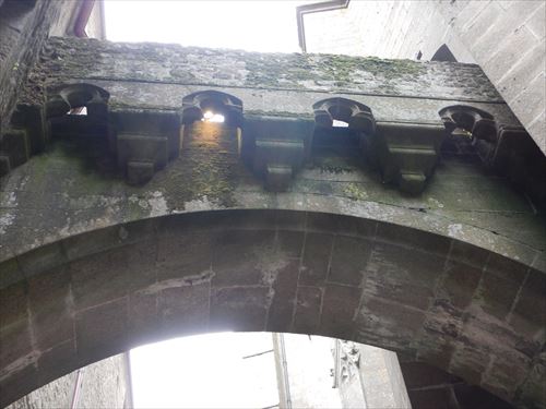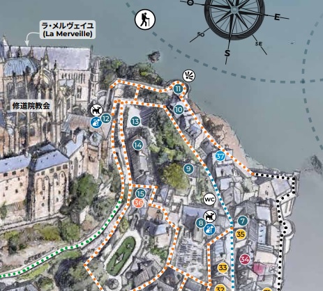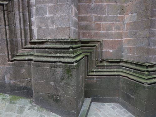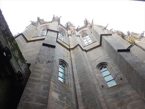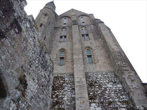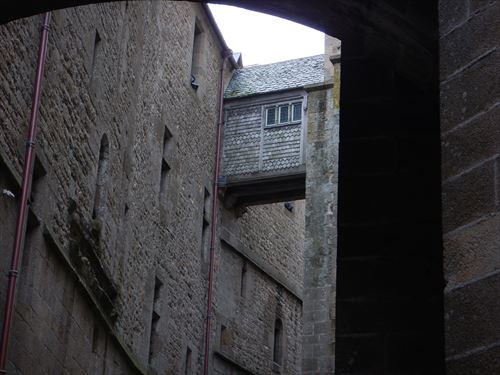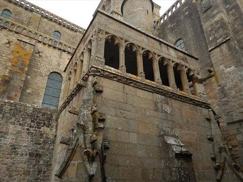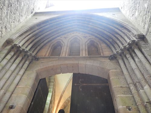 ラ・メルヴェイユ・デュ・モン・サン・ミッシェル ゴシック様式の修道院で1211年から1228年の間に建てられた。 食堂、地下室、写字室などいくつかの部屋がある。「ラ・メルヴェイユ」は「驚異」の意で由来は次のとおり。 1204年にフランスのフィリップ2世がノルマンディーを再征服した後に建てられた。 国王の指揮下にあるブルターニュ軍がモン・サン・ミッシェルに火を放ち大きな被害があり、国王の資金で再建が行われた。ロジャー2世の建物に代わる新しい修道院はその美しさから「驚異」と呼ばれた。 当初の計画は、3階建ての建物を3つ建て、キリスト教で重要な役割を果たす9つのセクション(3x3)に分割された正方形の象徴的な図形にしたいと考えた。この図形はヨハネの黙示録に各側に3つの門がある正方形の都市としてエルサレムが描かれることによる。 13 世紀半ばに ベネディクト会が衰退し、フランシスコ会やドミニコ会などの托鉢修道会が台頭したため資金を集めることが出来ず最終的に3つの建物のうち2つだけが建てらた。 東側の3階建が最初に建てられ一番下には施し物の間があり、当地を訪れる貧しい巡礼者たちがここで受け入れられた。2階はゲストルームで高位の人物や裕福な人物がここで迎えられました。最上階には修道士専用の食堂があり、全体として中世の社会を象徴している 中央の建物も3階建で 1階にはパントリーがあり、その上に写字室がある。最上階には、ベネディクト会修道士の生活の重要な部分である祈りと瞑想のための部屋があった。この構造の背後には物質的なもの(パントリー)、知的なもの(写字室)、精神的なもの(祈りと瞑想)がある |