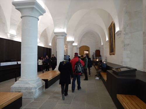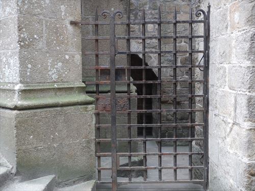 モン・サン・ミッシェルは岩山の上に建てられているため、元々あった岩山の一部が露出している。教会の1階は間取り図のとおり岩が大半を占める。 |