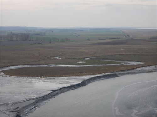 上の写真の中ほどのアップ 19世紀に、堤防の建設により海に干拓された土壌は、野菜栽培に適した土地となり、じゃがいも、レタス、紅エシャロットがこの肥沃な土地で栽培されている。 |