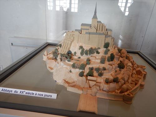 18世紀ごろ 18世紀末のフランス革命時に修道院は廃止され1863年まで国の監獄として使用され荒廃していたが、ヴィクトル・ユゴーの紹介でナポレオン3世が動き1865年に再び修道院として復元され、ミサが行われるようになった。 19世紀には陸との間に堤防を造成し鉄道・道路ができ陸続きになった。 |