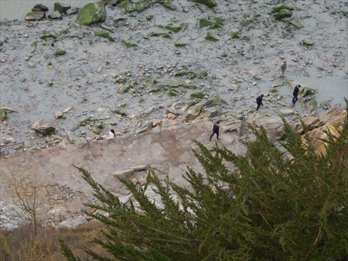 手前の写真のアップ。島の外周を歩く人 |