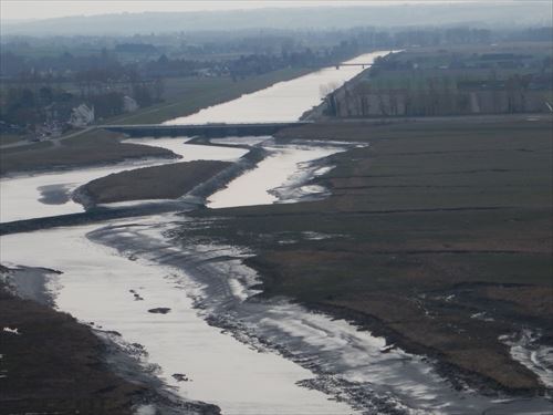 川(クエノン川Couesnon) が真っすぐになったところが大駐車場 |