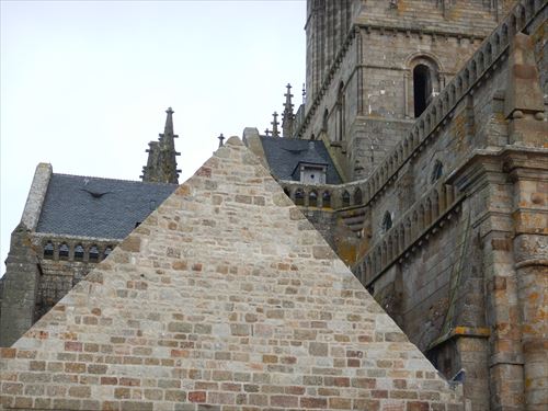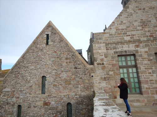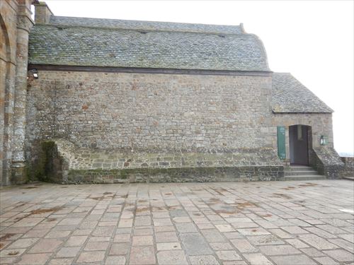 教会の北に隣接するこの建物はLa Merveille(ラ・メルヴェイユ)といわれる。こちら側(西側)は3階が回廊、2階が騎士の間、1階が地下室になっている。 |