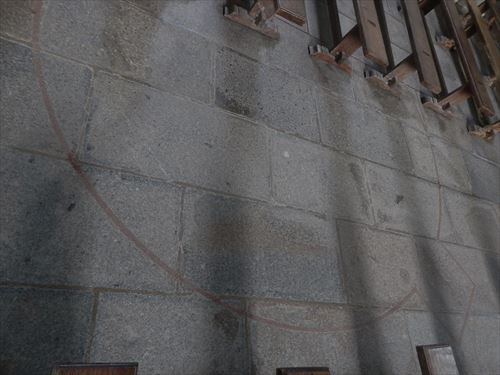 テラスの石には石工のサインがあるものがある |