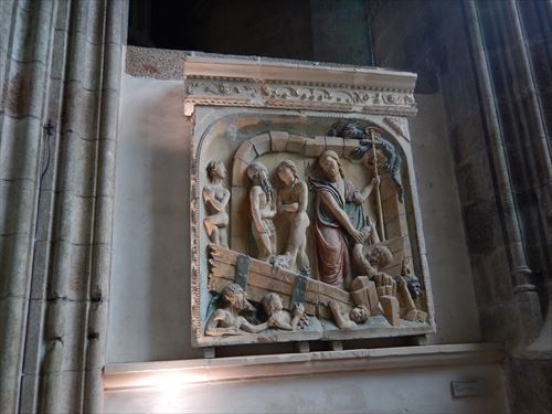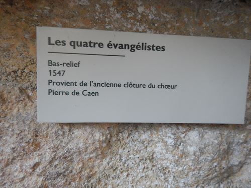 左の彫刻の説明 les quatre evangelistes 4人の伝道者 bas-relief 浅浮き彫り provient de L'ancienne cloture du choeur (古い合唱席から移設 |